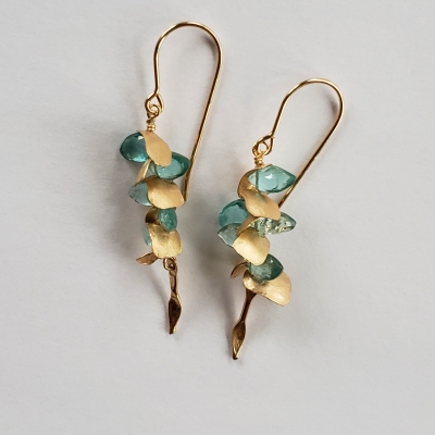 Lightweight earrings with golden petals.