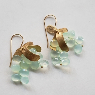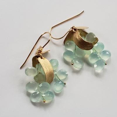 Irresistible grapes of sea foam blue chalcedony, all stones are faceted giving these earrings incredible shimer.