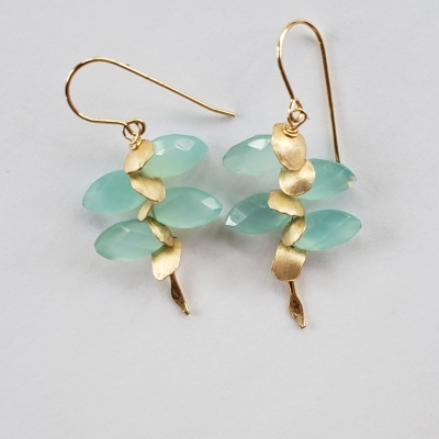 Smashing seafoam blue chalcedony earrings with golden petals.