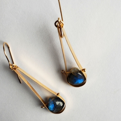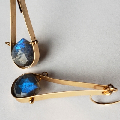 Long, dangling labradorite earrings, very lightweight. Hand made.