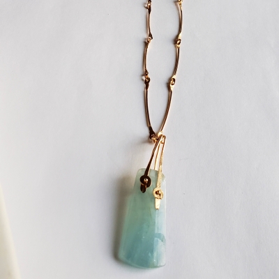 Charming blue calcite pendant swing below hand made stick chain, 14k gold filled.