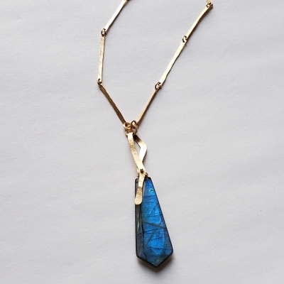 Stunning blue labradorite pendant, hand made chain, 14k gold filled.