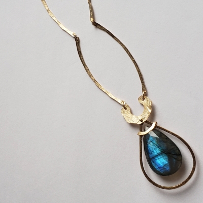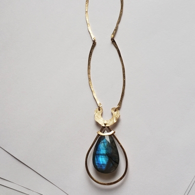 AAA quality labradorite pendant, hammered style chain. Hand made.